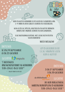 Jouw kindje tot 4 jaar kan dan ondertussen gezellig met de andere kinderen spelen. Iedere woensdag van 9.00-11.00 uur ben je in de even weken welkom bij de HUB en in de oneven weken bij ’t Jongerencentrum van ’t Westhoes.